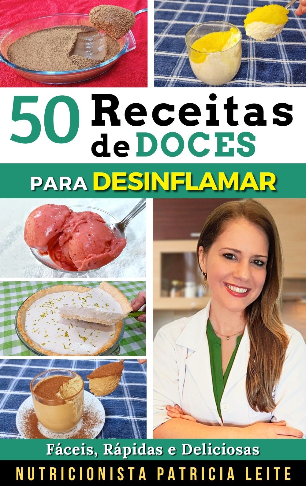 Neste livro, você encontrará 50 receitas deliciosas e saudáveis de doces e sobremesas que vão te ajudar a desinflamar o corpo, São doces sem adição de açúcar, com poucos carboidratos, muito equilibrados e variados. Você ficará surpreso de ver tantas receitas gostosas e muito fáceis, que a maioria das pessoas achava que nunca mais ia poder comer. São muitas receitas de mousse, torta, pudim, sorvete, doce de fruta, bolo, doce de amendoim, brigadeiro, brownie, cupcake, bolo de fruta, beijinho de coco, cheesecake, docinhos de festa, balinha, maria-mole, doces de travessa e muito mais.