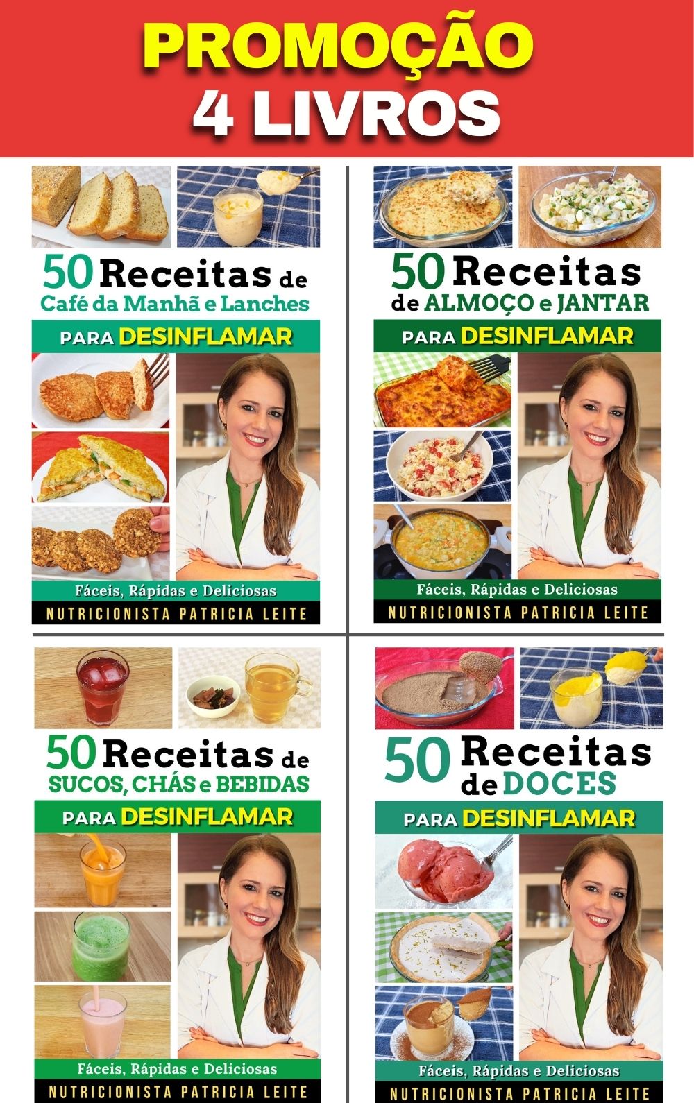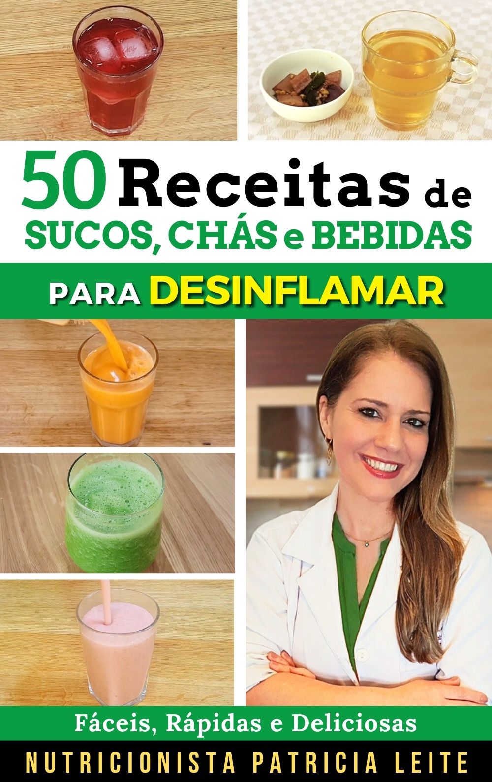 Neste livro, você encontrará 50 receitas gostosas, fáceis e rápidas de sucos, chás, vitaminas e bebidas para desinflamar o corpo. Elas vão te proporcionar uma variedade muito boa. O livro está repleto receitas de suco verde, suco com frutas, água saborizada, vitamina com frutas, shots turbinados, chás anti-inflamatórios e bebidas turbinadas. Essas bebidas são muito boas no café da manhã e lanche, mas também podem acompanhar o almoço ou jantar!
