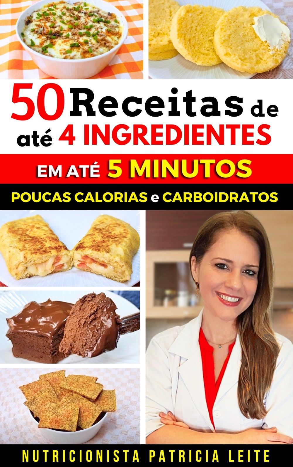 Neste livro, você encontrará 50 fáceis, gostosas e nutritivas, que podem ser feitas em menos de 5 minutos e com até 4 ingredientes. Além de muito saudáveis e equilibradas, elas tem poucas calorias e poucos carboidratos. Elas são ótimas para quem precisa de opções simples para uma dieta low carb, para controlar o açúcar no sangue, para diminuir a inflamação do corpo, ou simplesmente para que quer mais saúde com praticidade. Nesse livro você vai aprender a fazer sanduíches, bolos, pães, brigadeiro, bolacha, sobremesas e até refeições completas. Estas receitas vão te ajudar no café da manhã, almoço, lanche e jantar. Podem fazer parte de vários momentos do dia, trazendo uma alternativa leve e gostosa.