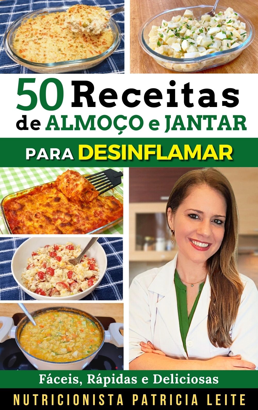 Neste livro, você encontrará 50 receitas fáceis, rápidas, deliciosas e econômicas para almoço e jantar que vão te ajudar a desinflamar o corpo. São opções saudáveis e baixas em carboidratos para os pratos mais amados nas principais refeições do dia. Estas alternativas são equilibradas, variadas e perfeitas para o dia a dia. Você encontrará receitas de quiches, tortas salgadas, lasanhas, escondidinhos, gratinados de legumes, saladas, sopas, salpicão, tortilha, fricassê de frango, torta cremosa, prato de frigideira, maionese, canja, pizza nutritiva e muito mais.